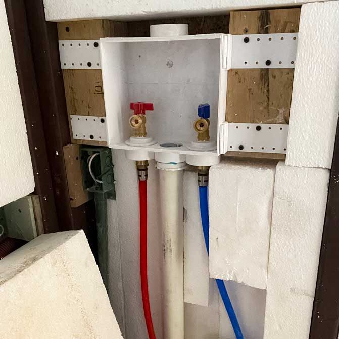 The exterior access Utility Closet encloses the water heater, a single-stage water filter, and extra space for other stuf,